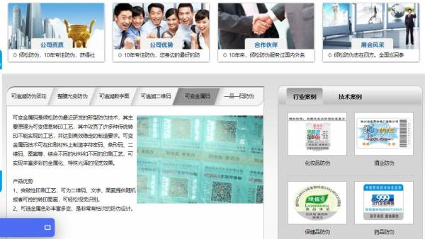 我們公司與廣州傾*數(shù)碼科技有限公司合作中,對(duì)這個(gè)公司所經(jīng)營(yíng)的防偽商標(biāo)這個(gè)行業(yè)提供了網(wǎng)站建設(shè)制作設(shè)計(jì),同時(shí)讓我們積累到更多的經(jīng)驗(yàn),與廣州傾*數(shù)碼科技有限公司這個(gè)公司建立了友好的合作伙伴的關(guān)系,也提高了海洋網(wǎng)絡(luò)在同行業(yè)的知名度,提高了廣州傾*數(shù)碼科技有限公司在同行業(yè)的知名度,發(fā)展越來越好。