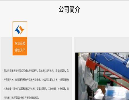 深圳市深拓光電有限公司選用我司企業(yè)商務型網站案例,其功能具備實用型所有配置外、特別值得關注的是增設了SEO深度優(yōu)化,不管是內頁還是標題都能夠獨立和個性化設置關鍵詞和長尾詞,更適合進行全站seo優(yōu)化。深圳市深拓光電有限公司是經深圳市市場監(jiān)督管理局審核的有資質的公司,統一社會信用代碼:91440300083415112L,深圳市深拓光電有限公司地址:深圳市福田區(qū)華強北街道振華路159號高科德電子市場31028A。