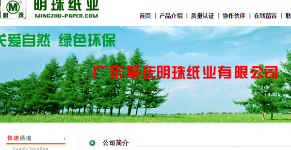 廣東肇慶明珠紙業(yè)有限公司跟本公司簽訂網(wǎng)站制作項目