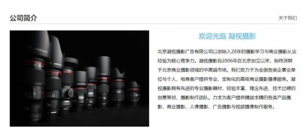 北京凝*攝影廣告有限公司網(wǎng)頁制作可視化建站作品欣賞