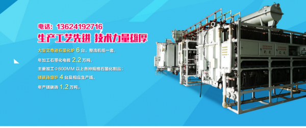 目前,公司擁有大型艾奇遜石墨化爐六臺、整流機(jī)組一套,年加工石墨化電極2.2萬噸,主要加工φ600mm以上各種規(guī)格石墨化制品;鎂碳磚熔爐4臺及相應(yīng)生產(chǎn)線,年產(chǎn)鎂碳磚1.2萬噸。生產(chǎn)工藝先進(jìn),技術(shù)力量雄厚。