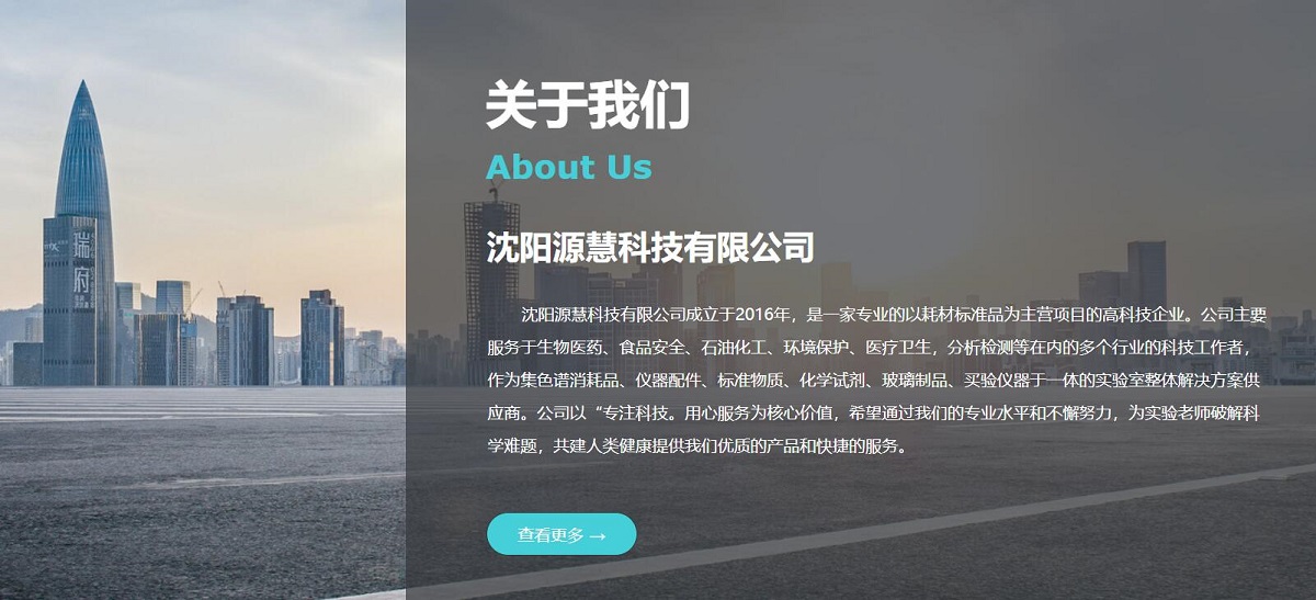 沈陽(yáng)源慧科技有限公司成立于2016年,是一家專業(yè)的以耗材標(biāo)準(zhǔn)品為主營(yíng)項(xiàng)目的高科技企業(yè)。公司主要服務(wù)于生物醫(yī)藥、食品安全、石油化工、環(huán)境保護(hù)、醫(yī)療衛(wèi)生,分析檢測(cè)等在內(nèi)的多個(gè)行業(yè)的科技工作者,作為集色譜消耗品、儀器配件、標(biāo)準(zhǔn)物質(zhì)、化學(xué)試劑、玻璃制品、買驗(yàn)儀器于一體的實(shí)驗(yàn)室整體解決方案供應(yīng)商。公司以“專注科技。用心服務(wù)為核心價(jià)值,希望通過我們的專業(yè)水平和不懈努力,為實(shí)驗(yàn)老師破解科學(xué)難題,共建人類健康提供我們優(yōu)質(zhì)的產(chǎn)品和快捷的服務(wù)。