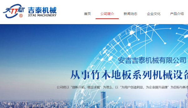 吉聚泰機(jī)械有限公司(原安吉吉泰機(jī)械有限公司)是一家從事竹木地板系列機(jī)械設(shè)備制造銷(xiāo)售于一體的專(zhuān)業(yè)公司,公司生產(chǎn)的“天賦”牌機(jī)械產(chǎn)品,被評(píng)為浙江省湖州市名牌產(chǎn)品,“天賦”牌商標(biāo)是浙江省湖州市著名商標(biāo)。產(chǎn)品有常規(guī)、側(cè)壓、平壓竹地板,竹、木重組地板、竹木復(fù)合地板及竹百葉窗、竹地毯、竹簽類(lèi)等系列設(shè)備。從胚板生產(chǎn)到企口、砂光、油漆成品板的生產(chǎn)機(jī)械,形成了一整套地板流水設(shè)備,同時(shí)為用戶(hù)提供廠(chǎng)區(qū)規(guī)劃、設(shè)備安裝及技術(shù)輔導(dǎo)等支持。