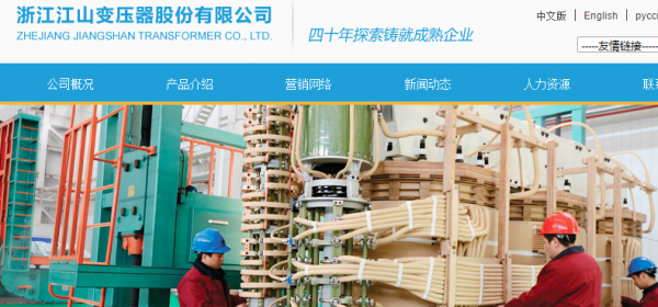 浙江江山變壓器股份有限公司(原浙江江山變壓器有限公司)始建于1969年,是專業(yè)生產(chǎn)500kV級以下電力變壓器生產(chǎn)廠家,是國內(nèi)為數(shù)不多的具備500kV級大型變壓器生產(chǎn)能力的廠家之一,公司是中國變壓器行業(yè)協(xié)會的理事單位,是2015年全國輸配電“十三五”規(guī)劃的五家起草單位之一,也是浙江省經(jīng)信委變壓器產(chǎn)業(yè)技術(shù)聯(lián)盟和浙江省科技廳變壓器產(chǎn)業(yè)技術(shù)創(chuàng)新戰(zhàn)略聯(lián)盟的理事長單位。企業(yè)為國家二級企業(yè)、浙江省文明單位,是國家經(jīng)貿(mào)委城鄉(xiāng)電網(wǎng)改造首批推薦優(yōu)強企業(yè),被列入國家千家名牌培育工程。公司先后獲得國家高新技術(shù)企業(yè)、省級輸變電裝備高新技術(shù)特色產(chǎn)業(yè)基地骨干企業(yè)、浙江省名牌產(chǎn)品、浙江省著名商標、浙江省AAA級守合同重信用單位、衢州市政府質(zhì)量獎、工業(yè)龍頭企業(yè)等榮譽。