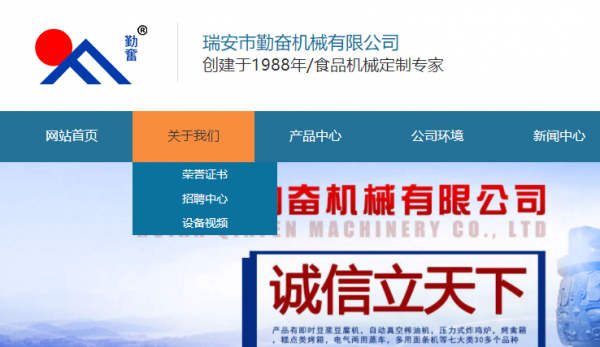 浙江省瑞安市勤奮機(jī)械有限公司跟本公司簽訂網(wǎng)站制作項目