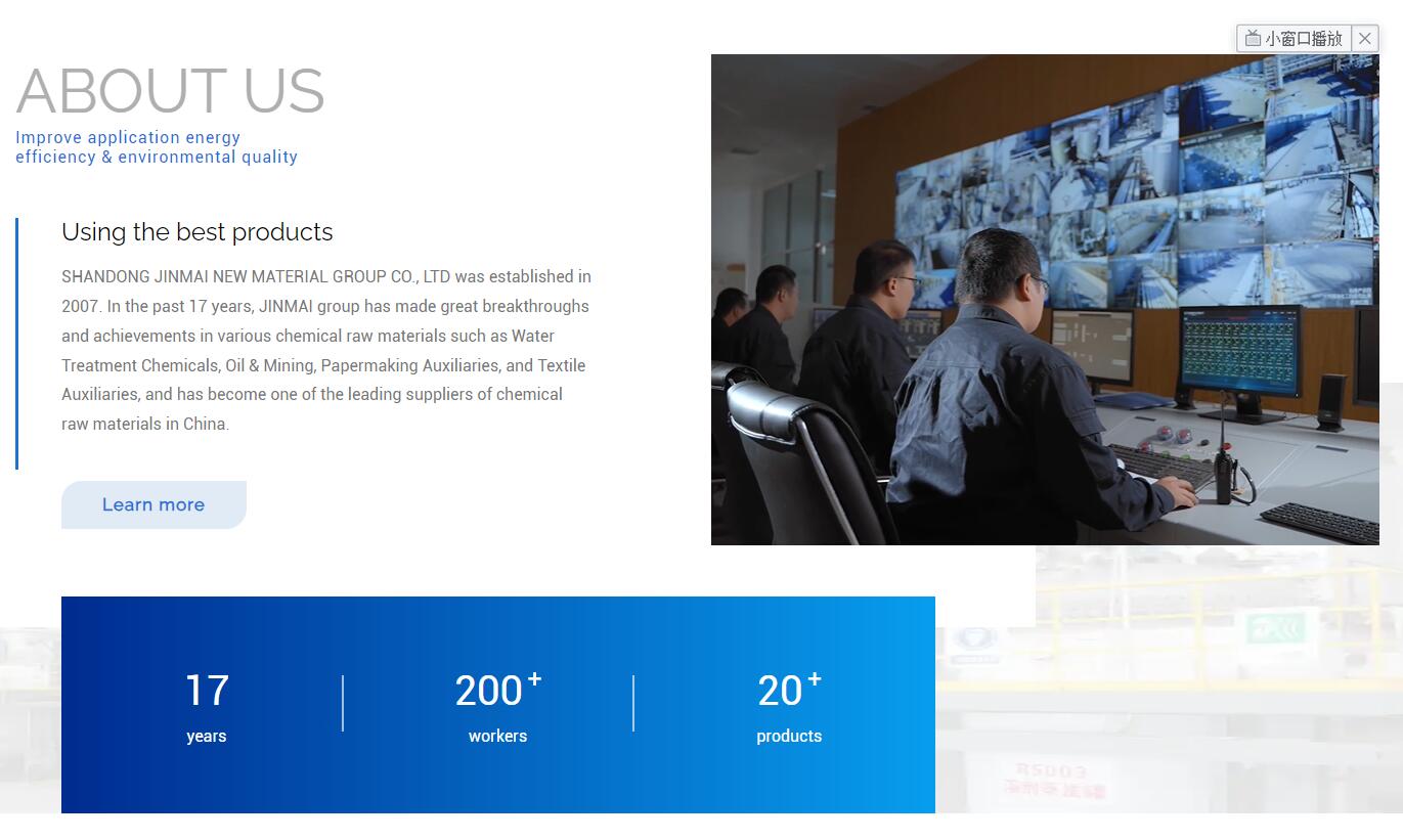 Shandong Jinmai New Material Group Co., Ltd, founded in 2007, excels in the research, development, production, and promotion of chemical raw materials. we have achieved significant breakthroughs in water treatment chemicals, oil & mining, papermaking auxiliaries, and textile auxiliaries, becoming a leading supplier in China.