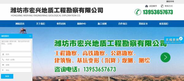 濰坊市宏興地質(zhì)工程勘察有限公司選用我司企業(yè)工程勘察行業(yè)的網(wǎng)站優(yōu)化產(chǎn)品,其SEO關(guān)鍵詞有 工程勘測,高鐵勘測,公路勘測,建筑物、基坑邊形(沉降)觀測,測繪,濰坊工程測繪,濰坊工程勘測。其特點是用很合適的展示方式、展示效果、站點框架,把客戶及其用戶很關(guān)心的問題突出表現(xiàn);并以簡潔明朗的設(shè)計風(fēng)格,清晰展現(xiàn)公司水平實力,確保一秒抓住目標用戶眼球,給用戶留下良好的第一印象。濰坊市宏興地質(zhì)工程勘察有限公司成立于1989年,是經(jīng)市濰坊市場監(jiān)督管理局審核的有資質(zhì)的公司,其統(tǒng)一社會信用代碼:913707057554140410 。公司地址:高新區(qū)晟景大廈十三層。